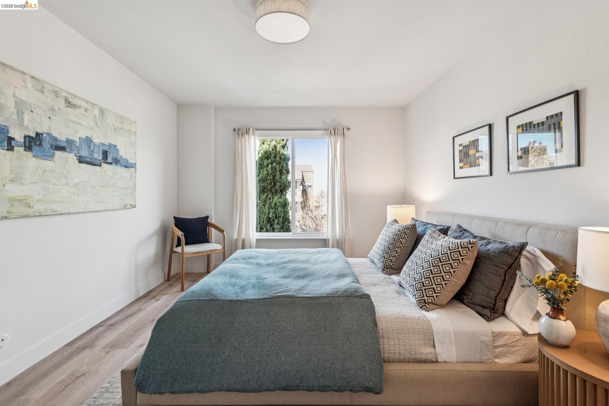 Wonderful 3rd floor condo with gorgeous views, big closets, and modern finishes. Huge living area opens to private balcony with outlooks to the hills & bridges. Kitchen features new fridge, cooktop, range hood, and dishwasher. Huge hall closet for storage, and walk-in closet in the primary bedroom. Bathroom offers lots of storage and useful counter space. Secure parking space in the garage, plus deeded storage space for extra stuff. The building includes a community swimming pool for summer heat waves! Excellent location close to Lake Merritt, Grand Ave, Piedmont Ave, Uptown, and so much more!
